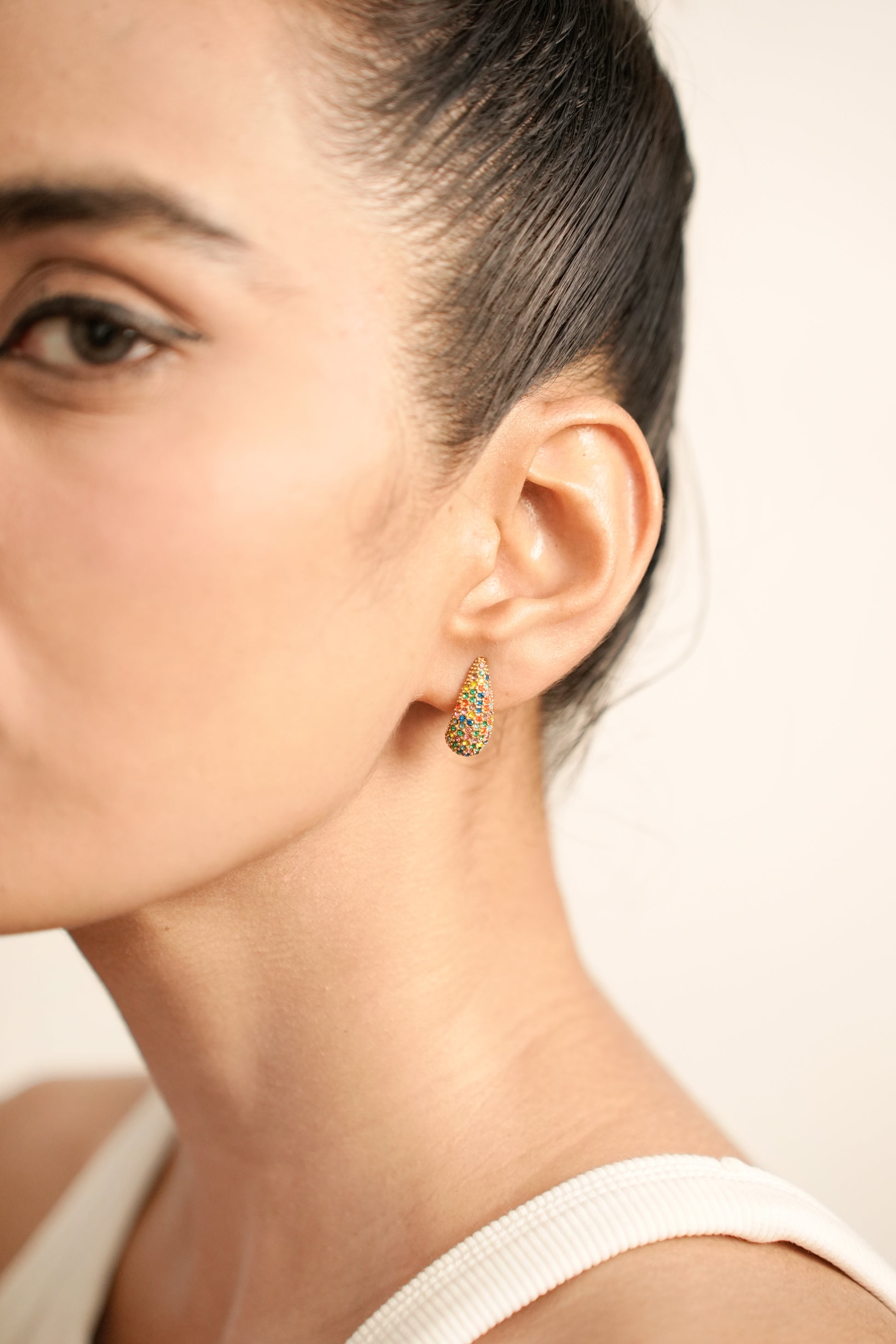 Echoing the beauty of the morning aurora, these studs feature dazzling white crystals set in warm gold plating. Their refined silhouette balances minimal charm with timeless sparkle, making them perfect for weddings, festive celebrations, or adding effortless radiance to everyday elegance.