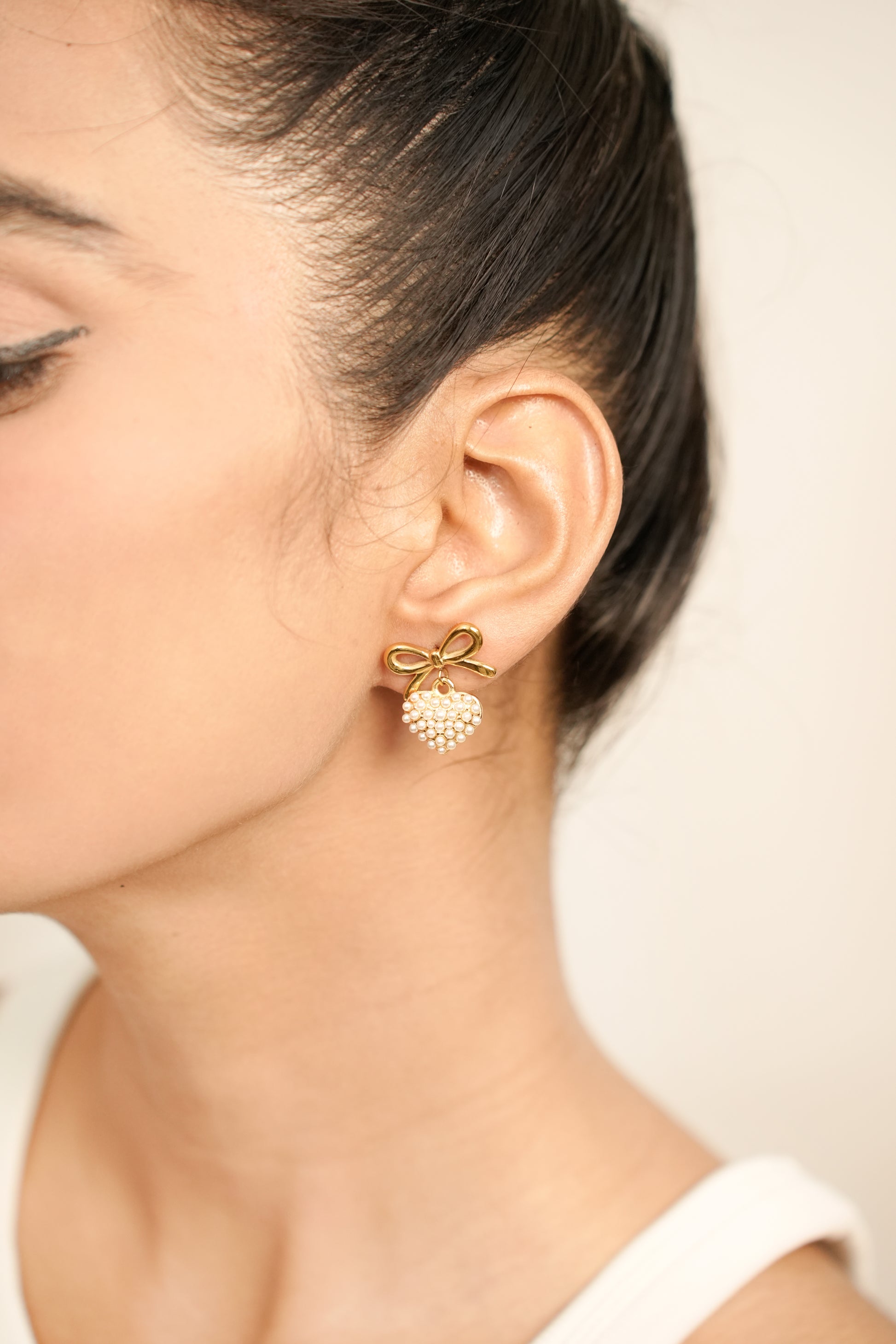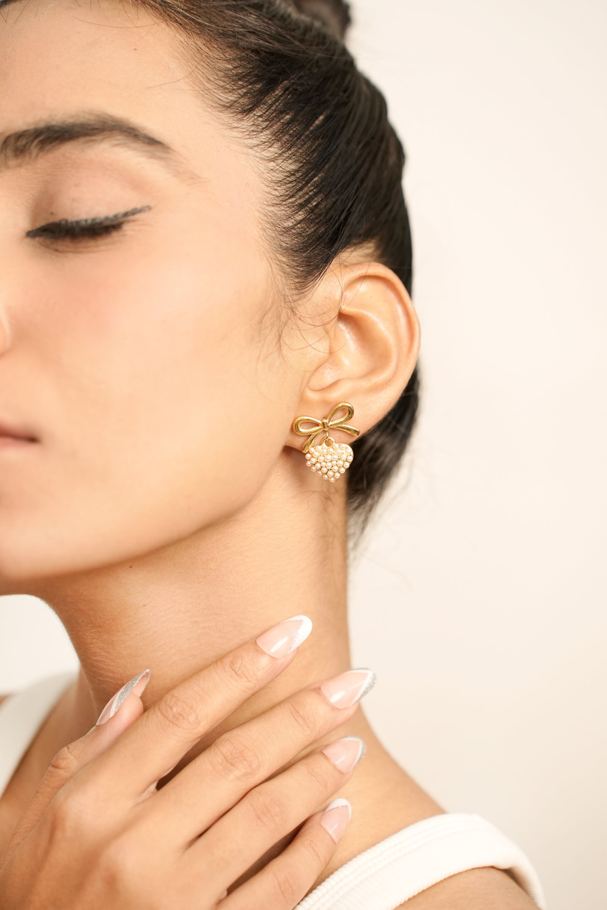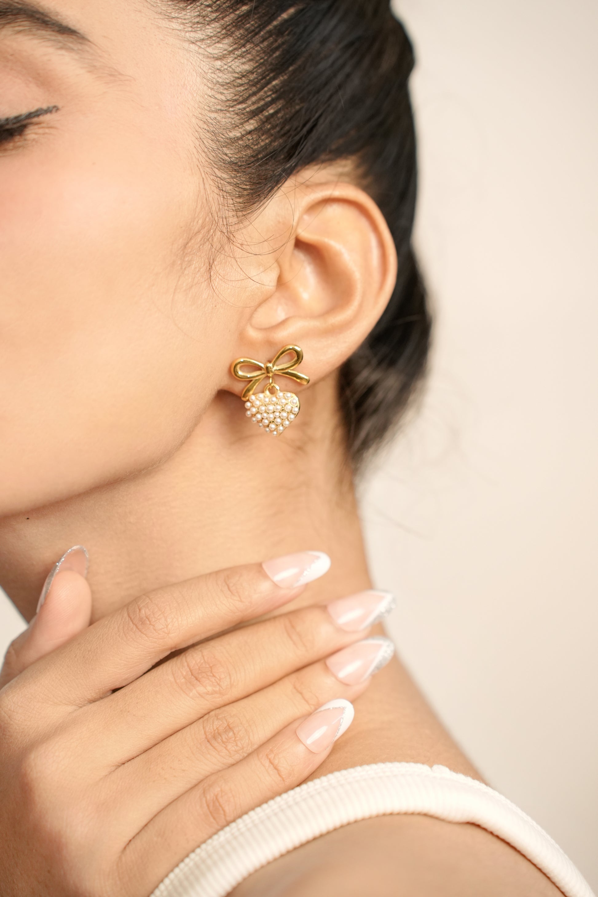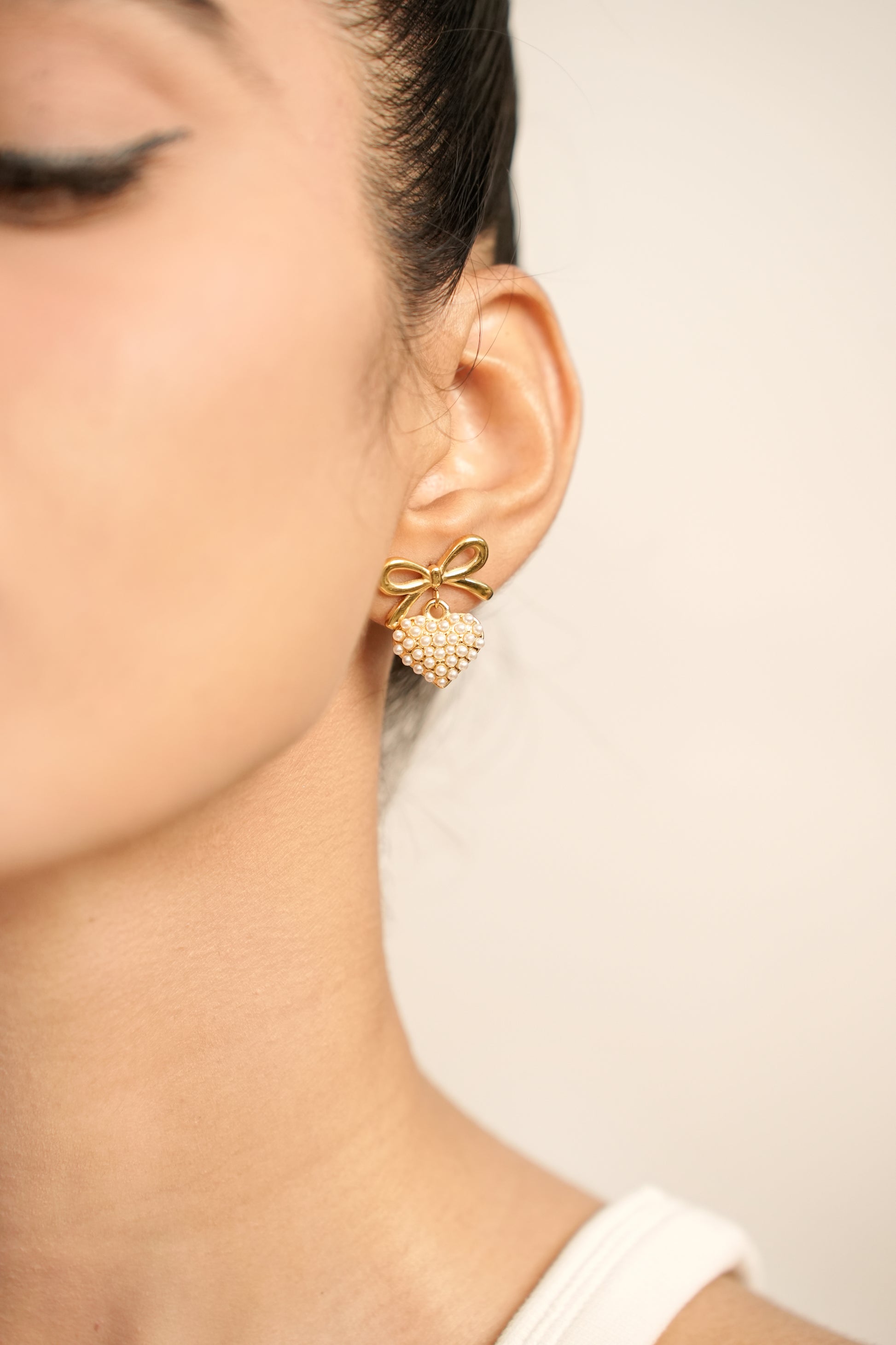 Playful yet poised, a heart-shaped pearl-studded charm. A luxe statement of romance and femininity.